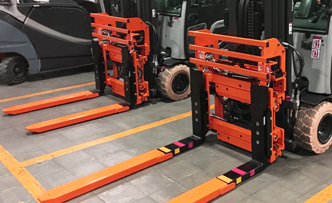 調(diào)距叉廣泛應(yīng)用于第三方物流。裝卸時搬運各種托盤、盒子、籠子和空運集裝箱,負載貨物的尺寸變化較大。叉車租賃車隊必須全天候進行多種工況的應(yīng)用。